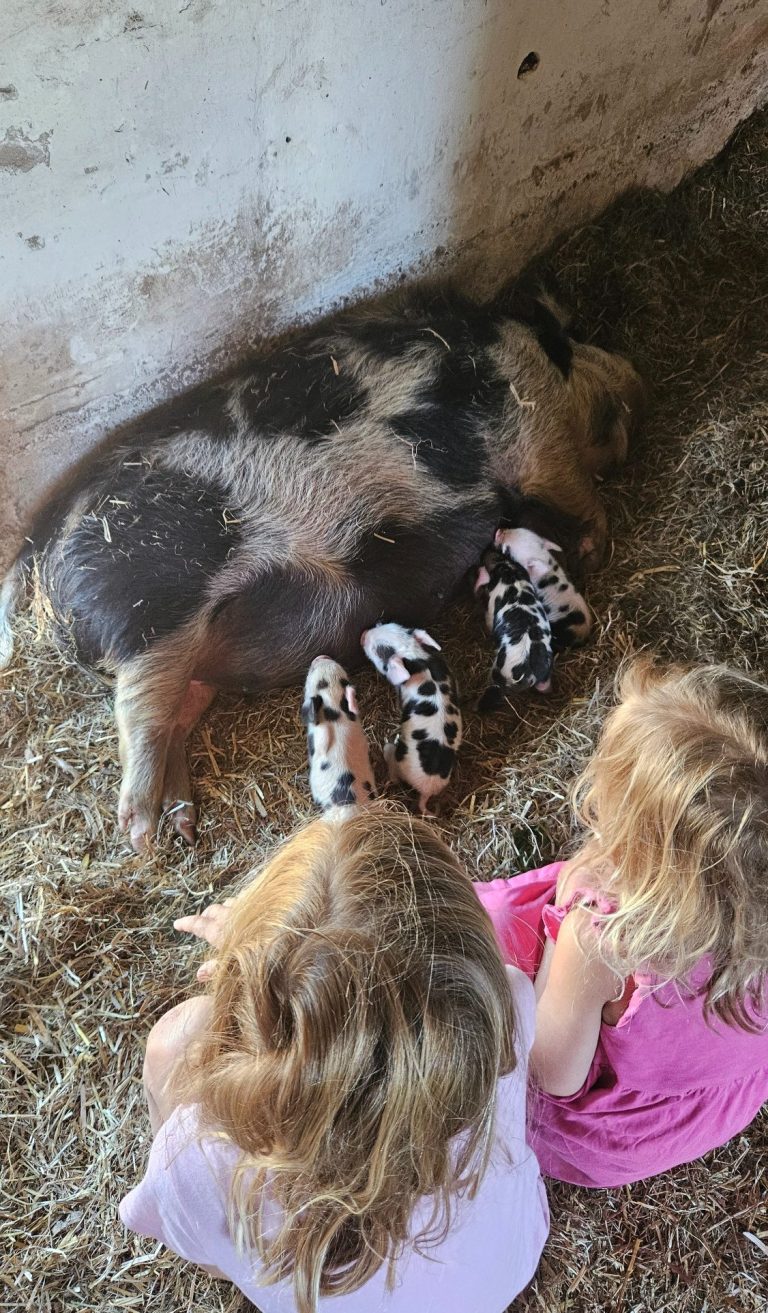 Auch für uns ist es etwas ganz Besonderes, diesen Start ins Leben begleiten zu dürfen. Der Stall ist nun deutlich lebendiger und voller fröhlichem Grunzen.
